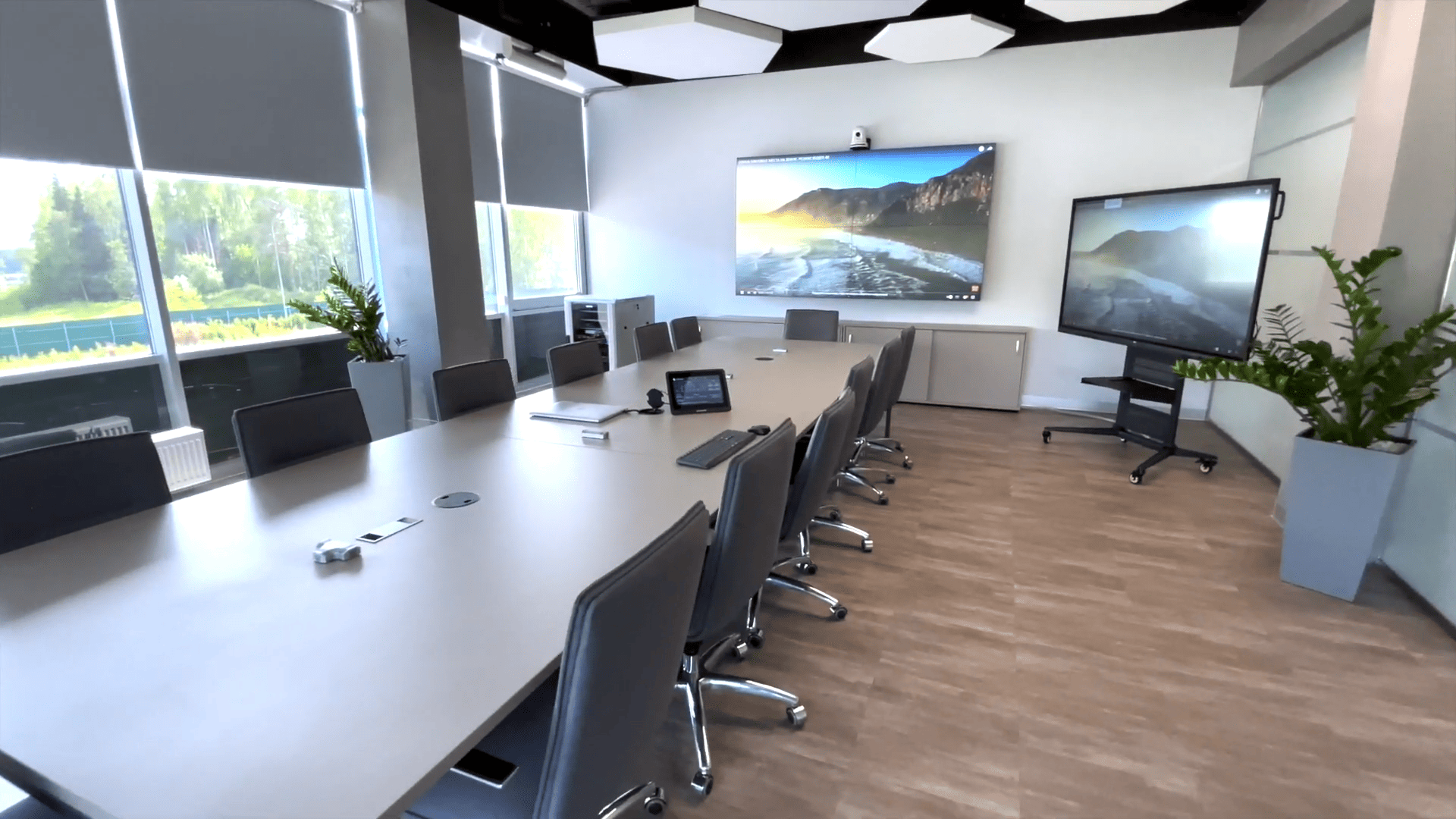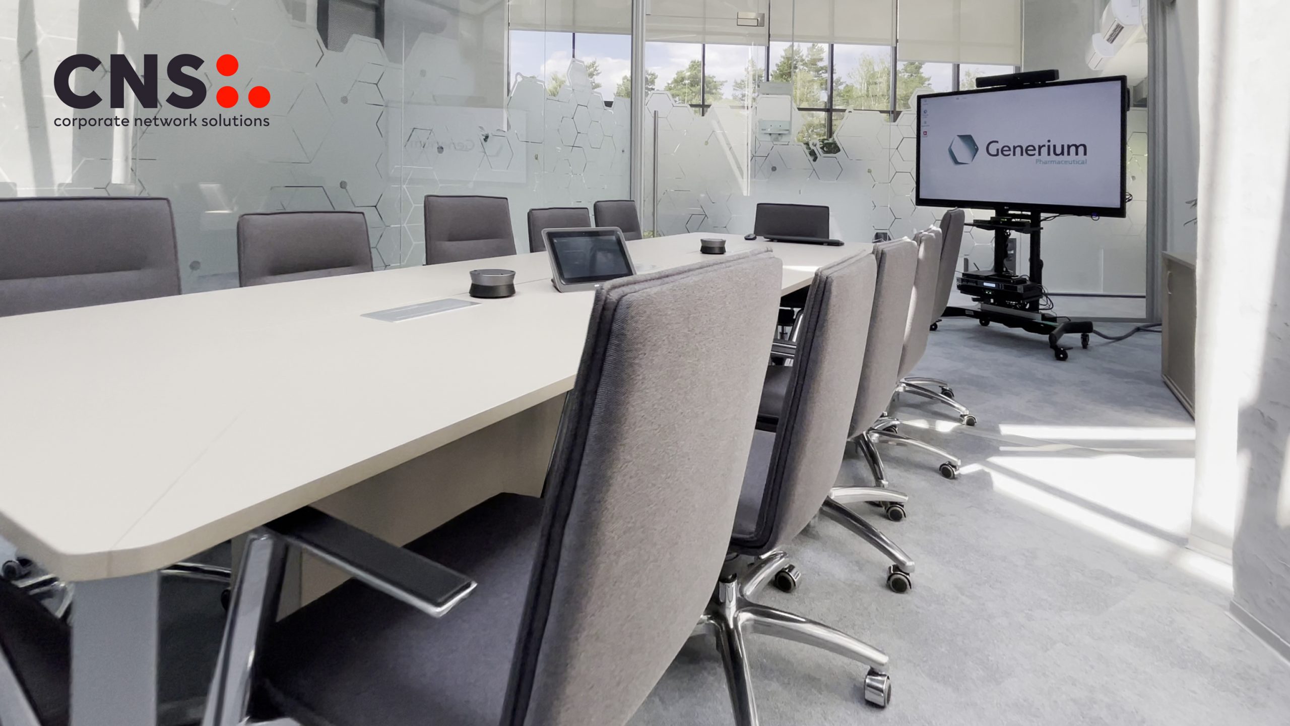 Для АО «Генериум» наша компания произвела комплексное оснащение переговорных комнат и кабинетов руководителей видео и аудио оборудованием для видеоконференцсвязи и отображения мультимедиа файлов. У заказчика была потребность в проведении ВКС с высококачественным звуковым и видео сопровождением с возможностью отображения медиа данных по проводной и беспроводной связи. Для оборудования переговорных комнат под требования клиента, каждая переговорная комната была оснащена интерактивной панелью LG, BYOD устройством Kramer для беспроводной трансляции экрана, видеобаром и спикерфонами компании Nearity и в некоторые комнаты добавлены звуковые массивы ASR. Вся коммутация выполнена оборудованием компании Kramer. Подключение ноутбука осуществляется с настольного лючка. В кабинетах руководителей требовалось максимально мобильно организовать ВКС и возможность трансляции картинки с экрана ноутбука для участников конференции, для этого использовали 55 дюймовую TV панель LG на мобильной стойке Onkron, видеобар, спикерфон компании Nearity и модуль для подключения кабелей Kramer.